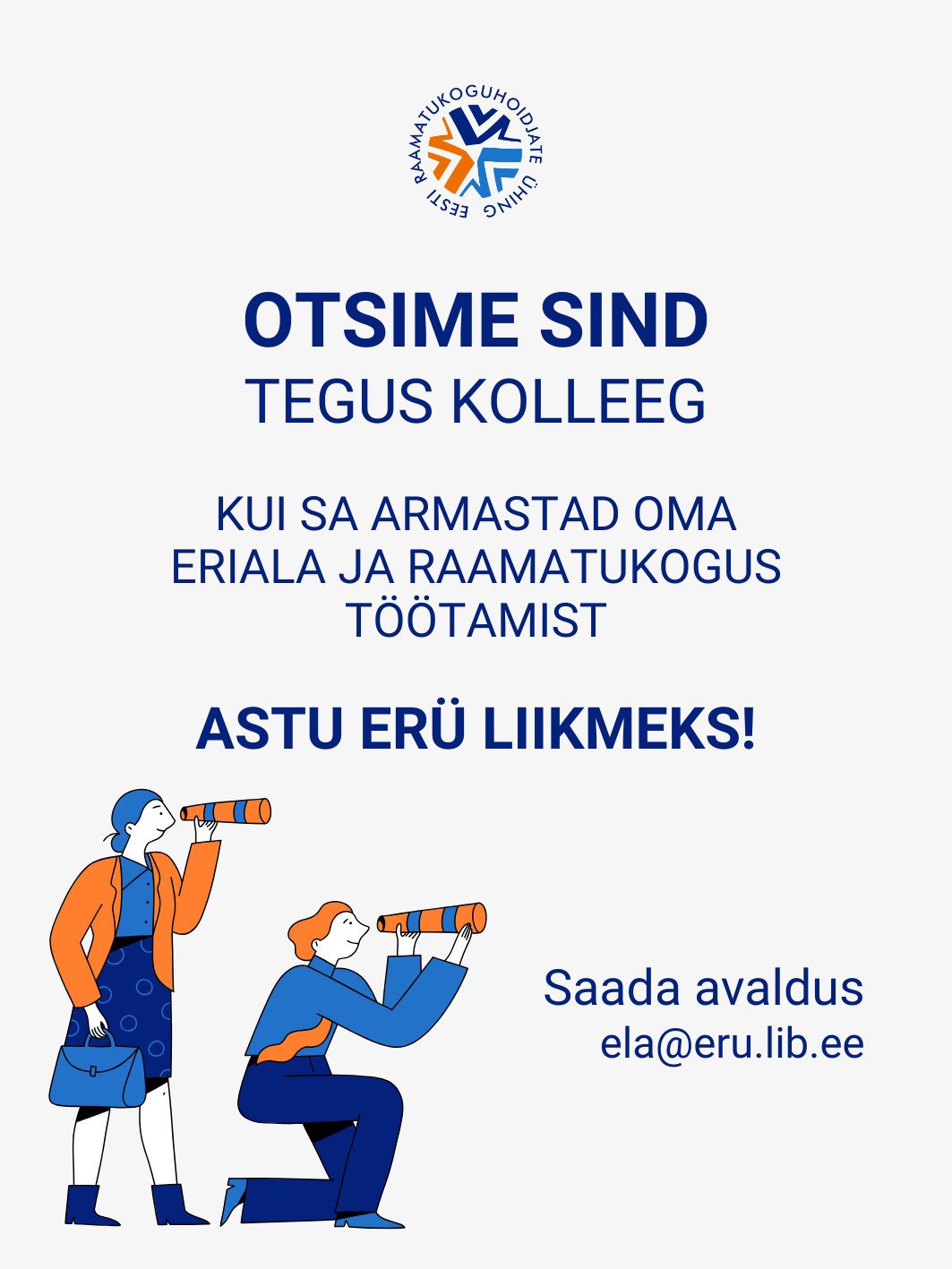 - Kui sa armastad oma eriala ja raamatukogus töötamist - liitu soodustingimustel Eesti Raamatukoguhoidjate Ühinguga!